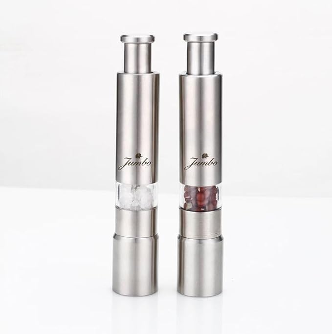 Jumbo stick standlı tuz karabiber değirmeni, mutfakta lezzetinizi devleştirmek için tasarlanan ürün. Paslanmaz çelikten yapılan değirmen, sağlamlığı ve dayanıklılığıyla dikkat çekiyor. Modern ve şık gümüş rengi ile mutfağınıza zarif dokunuş katıyor. Üstelik bulaşık makinesinde yıkanabilir olması da temizlik açısından büyük kolaylık.