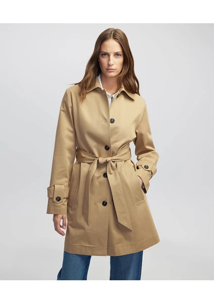 Kendi kumaşından kuşağı sayesinde bel formunu isteğe göre ayarlama imkânı tanıyan tasarım, sofistike kombinlerin güçlü tamamlayıcısı oluyor. Günlük stilin yanında daha klasik kombinlerde de rahatlıkla tercih edilebilen parça, zamansız duruşuyla gardıropların yıldızları arasında yer alıyor.