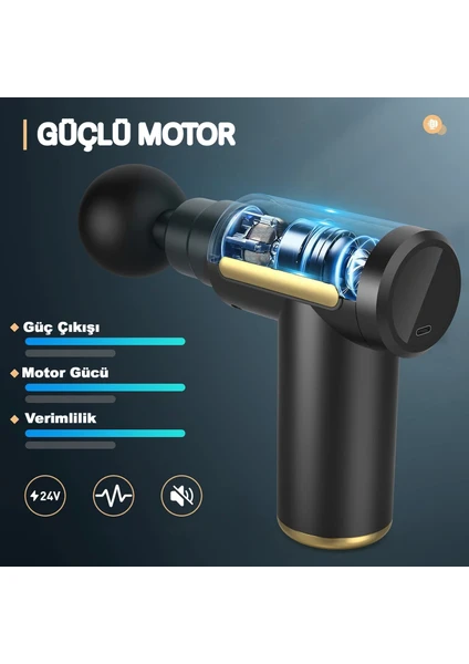 Type-C şarj girişi sayesinde kolay hızlı şarj edilen masaj tabancası, uzun süreli kullanım imkânı sunar. Sürekli prize bağımlı kalmadan, çantaya atıp taşınabilir. Özelliği sayesinde evde, ofiste, spor salonunda, seyahatte rahatlıkla kullanılabilir.